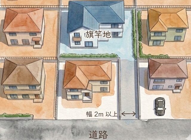 旗竿地とは、その名の通り「旗」と「竿(さお)」の形をした土地のことです。