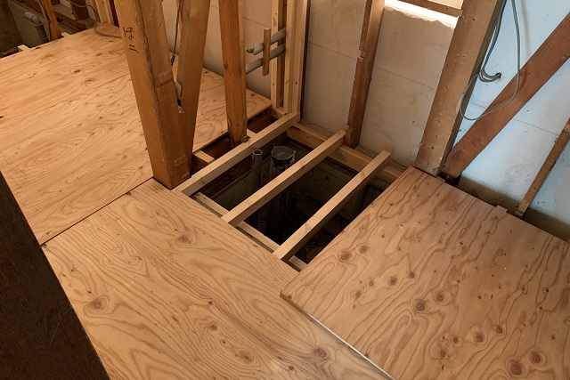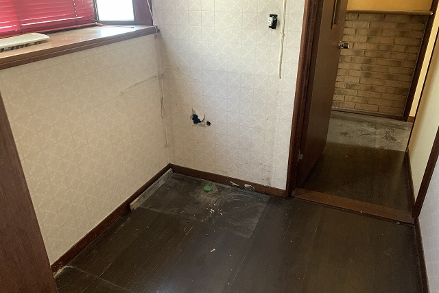 1階廊下~トイレ~洗面所~浴室と解体が進み、スケルトンになっていきます。床や壁を取っ払ってみると、全体的な空間が狭く感じるから不思議です。