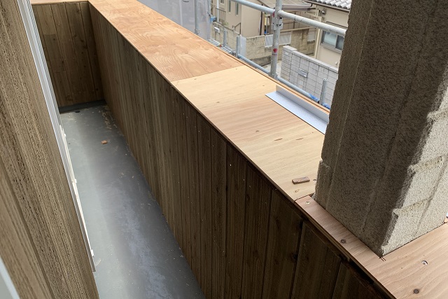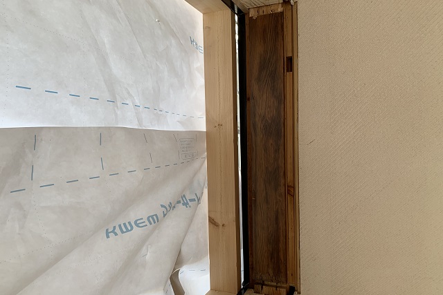 「透湿防水シート」の役割は、外からの雨漏りを防ぎつつ、家の中の湿気を外に逃がすこと。水分は木造住宅にとって大敵ですからね。