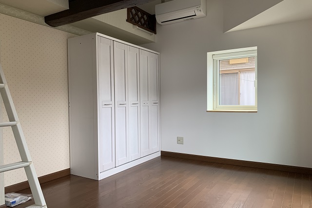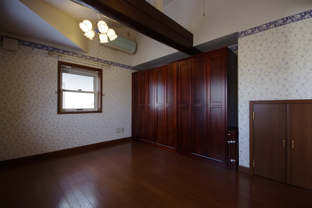 1階のもともと和室だった部屋は洋室8帖に。床の間&押し入れのスペースをウォークインクローゼットにし、収納力をアップ。