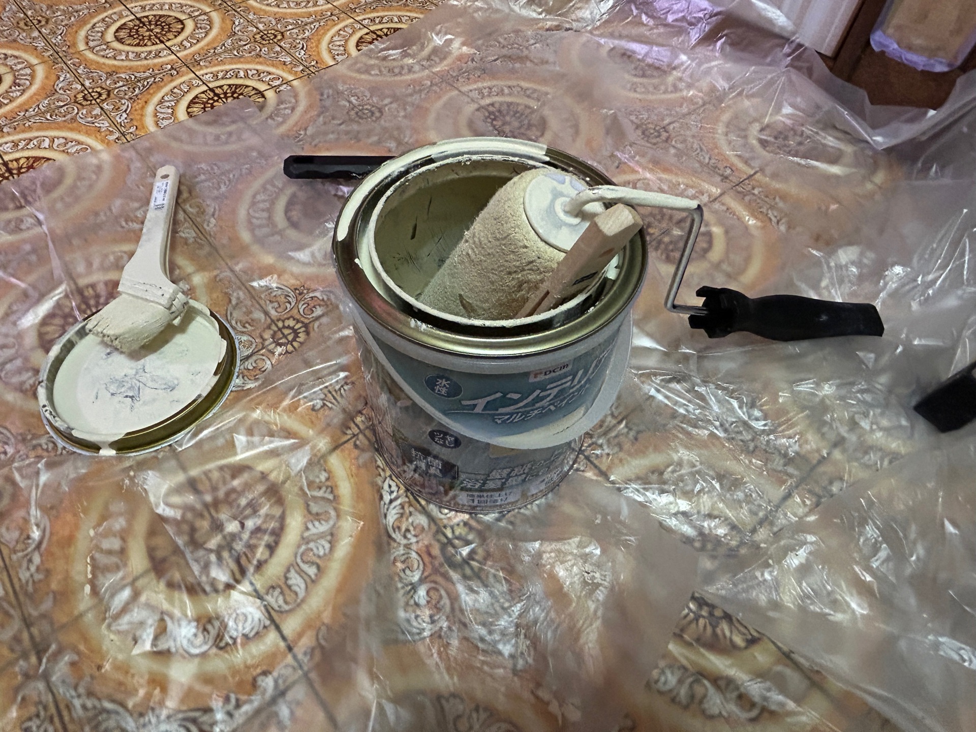 しかし、勇気を出して、アイボリーの塗料で一気に塗装開始!